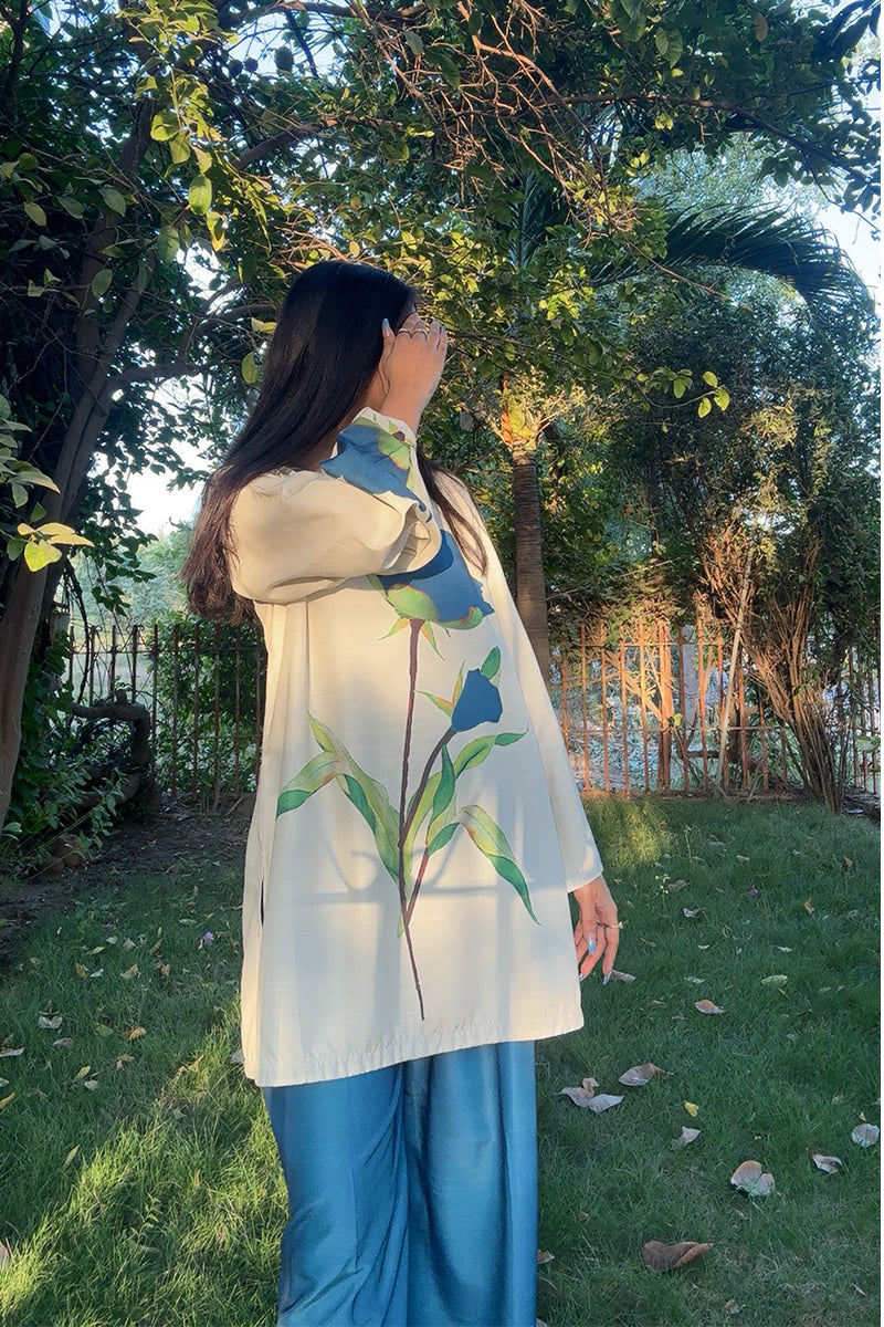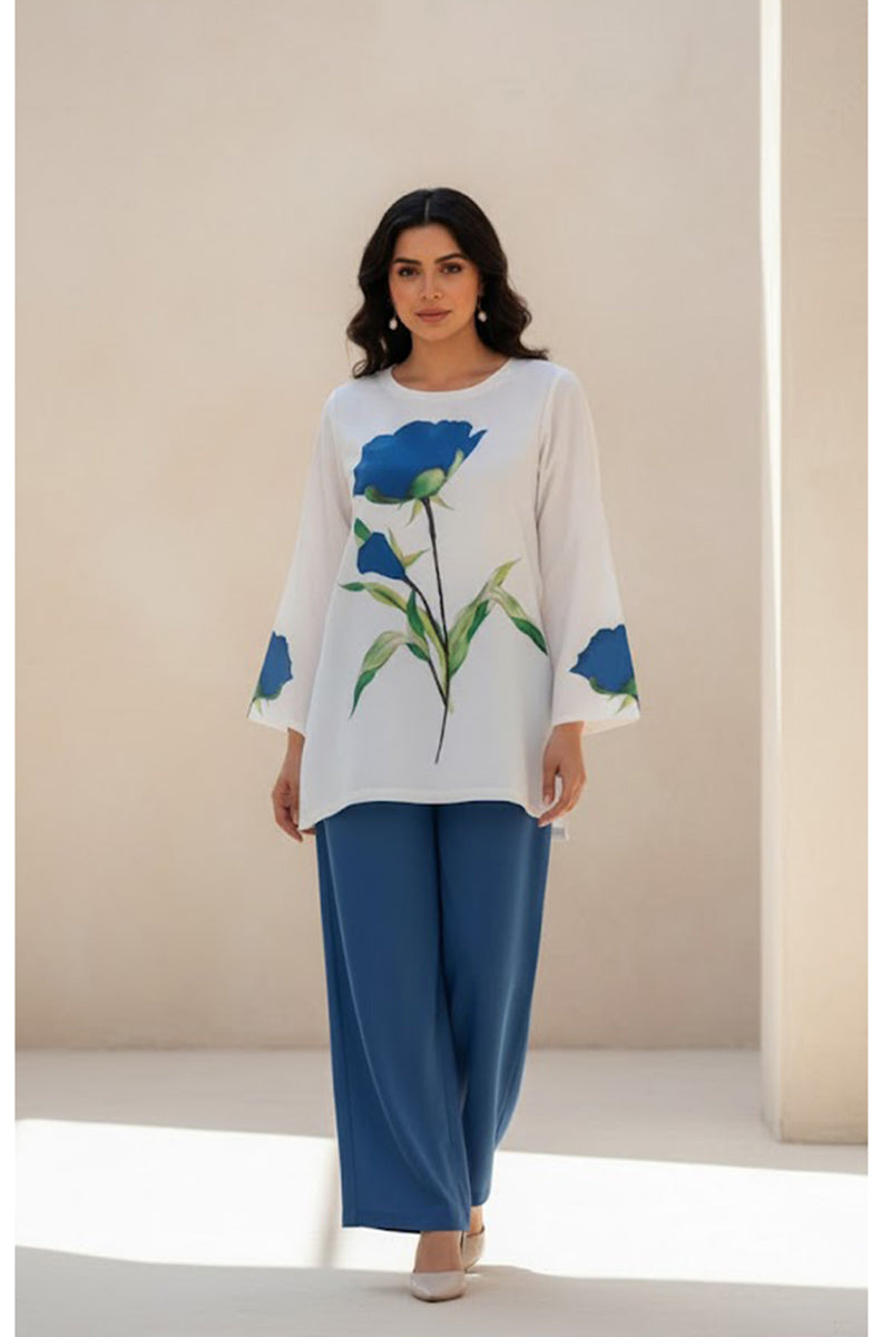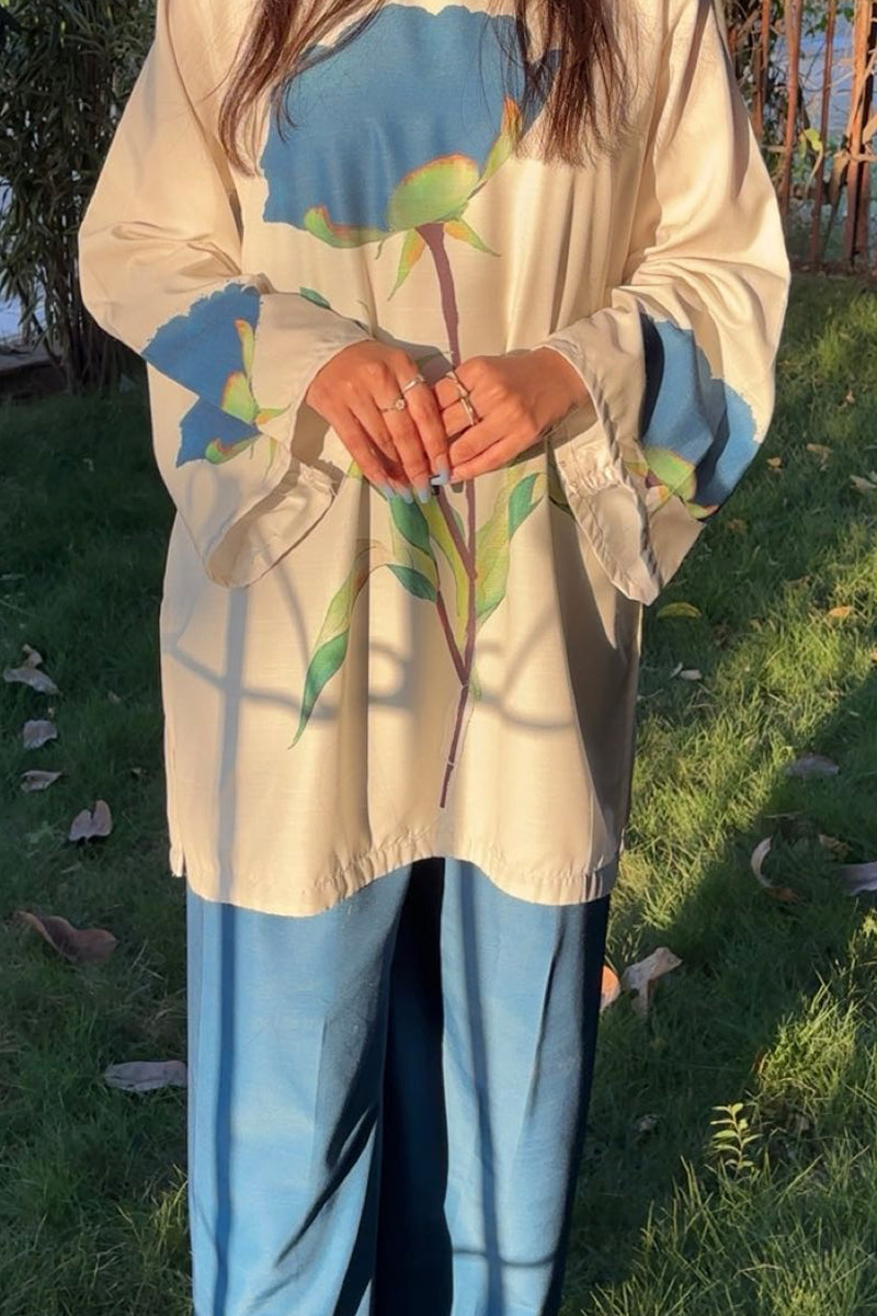 Step into elegance with Bloom Essence, a timeless 2-piece ensemble crafted from premium khaddar fabric. The pristine white shirt features bold, artistic red floral prints that evoke the freshness of blooming gardens, perfectly paired with solid red trousers for a graceful contrast.
