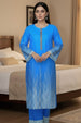 Detailing: The sleeves are finished with a sophisticated cuff pattern featuring a subtle grey/blue digital or printed design, mirroring the detailing on the dupatta.