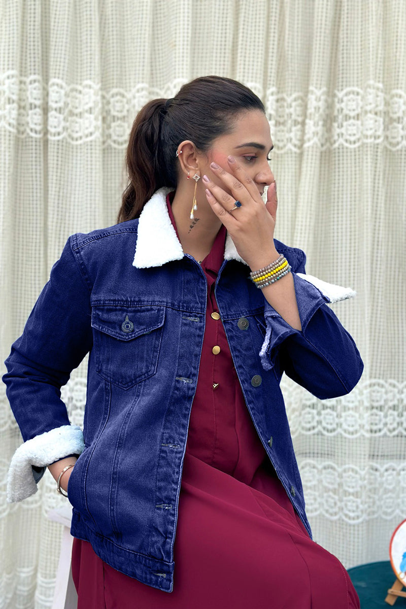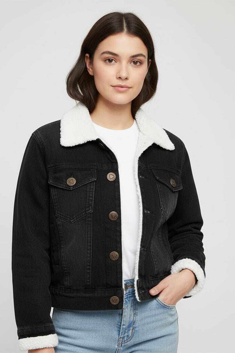 Step into cozy chic with Winter Haze , a timeless blue denim jacket lined with soft white sherpa for extra warmth and style. Designed for both comfort and trend, it features a classic button-down front, chest flap pockets, and cuffed sleeves with plush inner lining. The contrast of cool denim and fluffy sherpa makes it a perfect winter essential — effortlessly elevating casual looks with a touch of vintage charm.